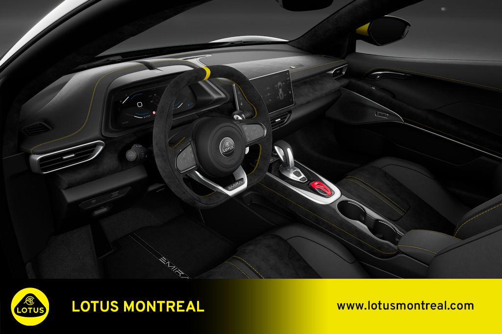 - Black Alcantara with yellow contrast stitching